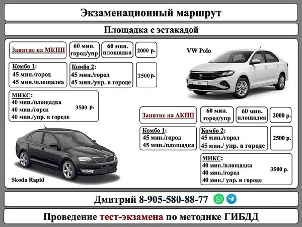 Здравствуйте, я автоинструктор по вождению в Марьино, МКПП и АКПП, отработка экзаменационного маршрута, занятия на площадке с настоящей эстакадой, вождение в городе, восстановление утраченных навыков.